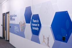 Our core values of Belief, Courage and Honesty are embedded throughout the artwork, reinforcing positive messages as students move through the school each day. Together, these elements encourage reflection, resilience and a belief in personal potential.