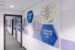 The artwork has been carefully developed using the school’s branding colours and features recognisable local landmarks, helping students feel a sense of connection and belonging. Interwoven within the designs are inspirational quotes from well-known figures chosen specifically so that our students can relate or look up to their stories and achievements.